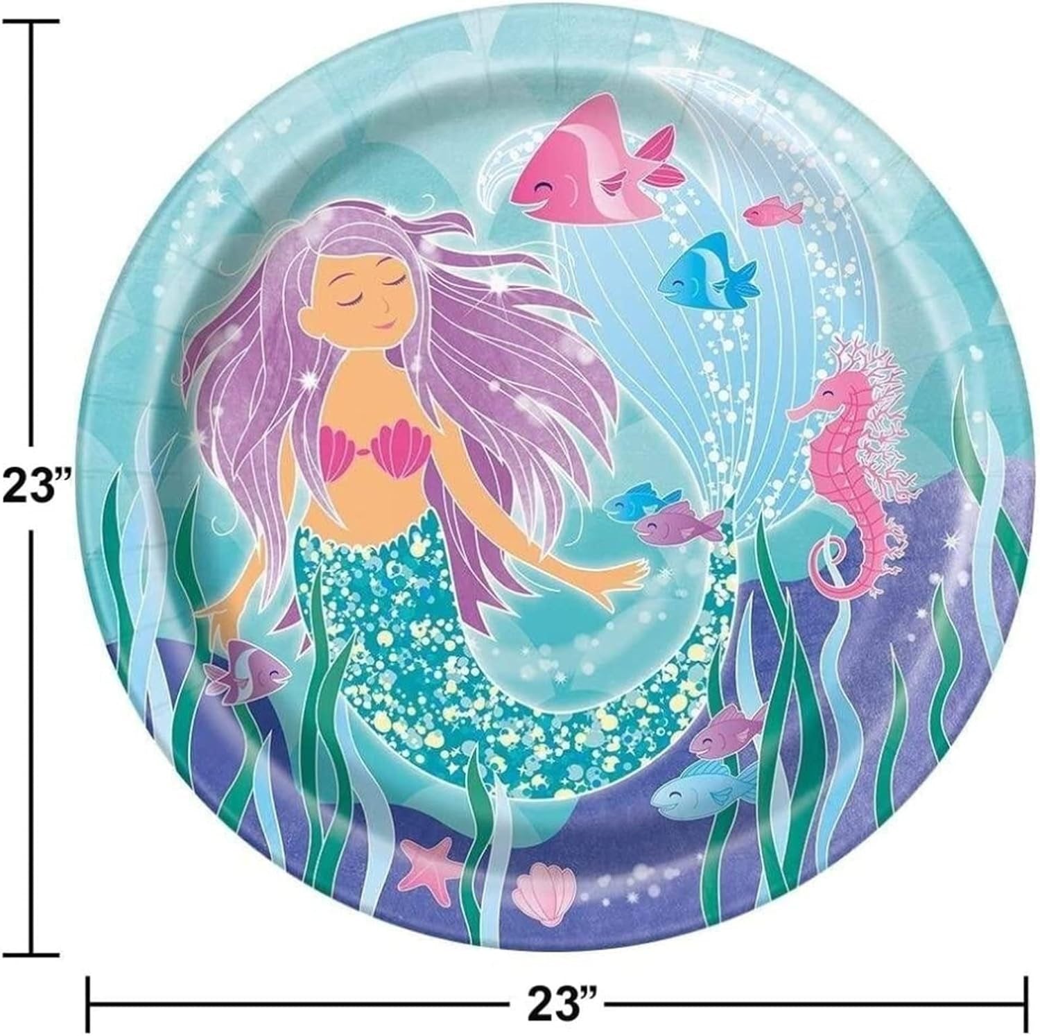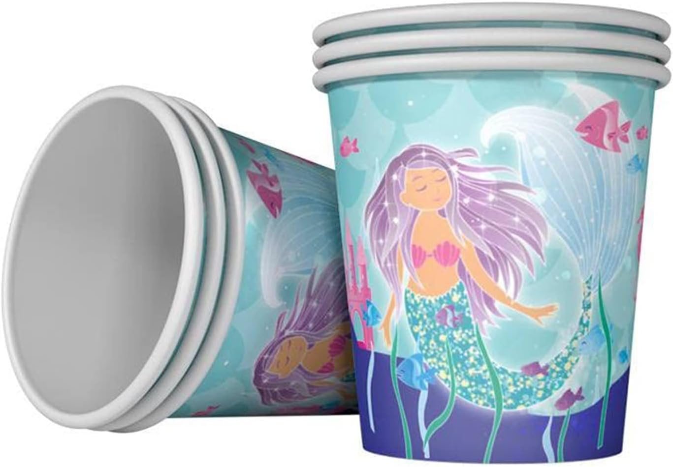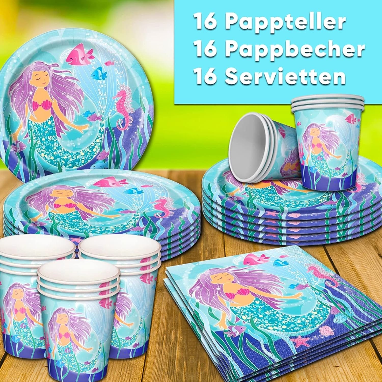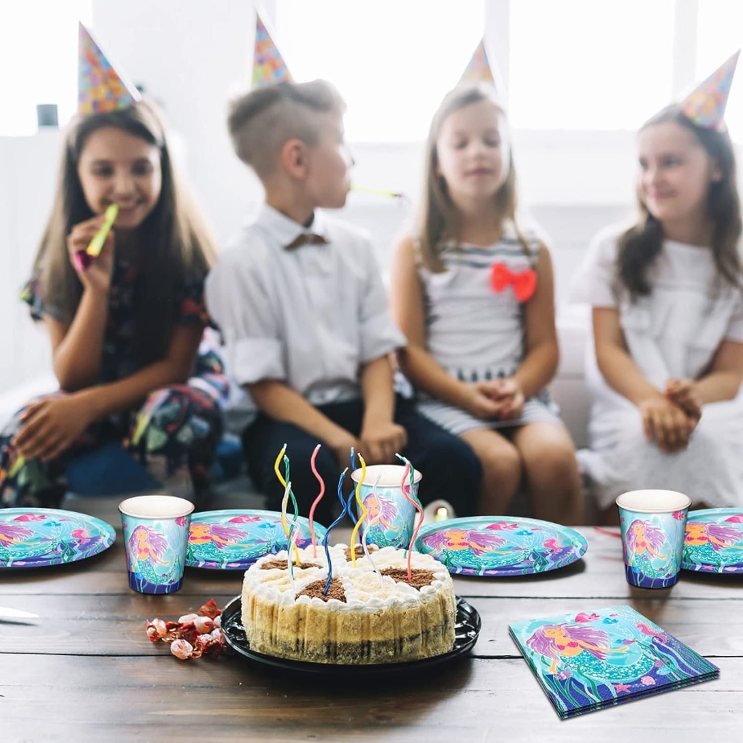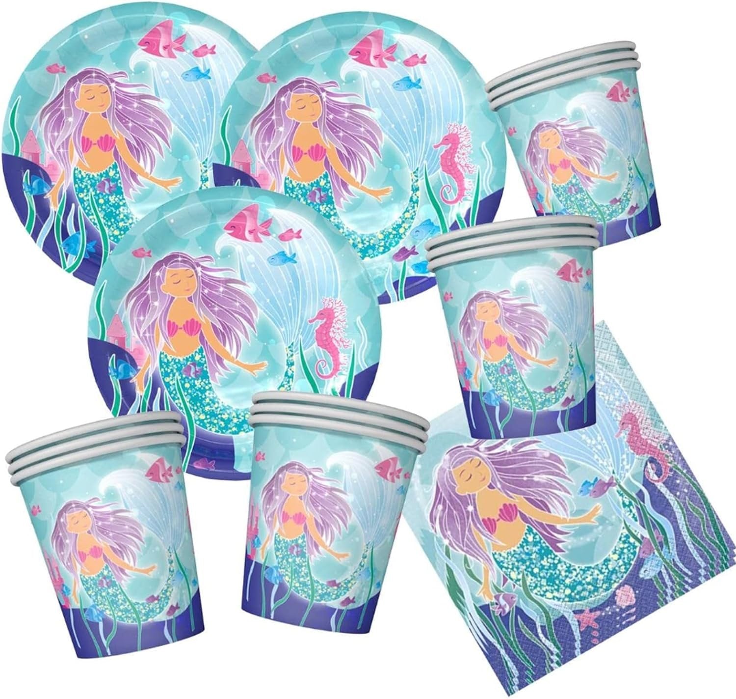 [Infashion]マーメイドの誕生日の装飾-紙皿子供の誕生日セット-マーメイド食器セット-マーメイドパーティーアクセサリーセット-紙コップ紙皿16人の子供のためのナプキン