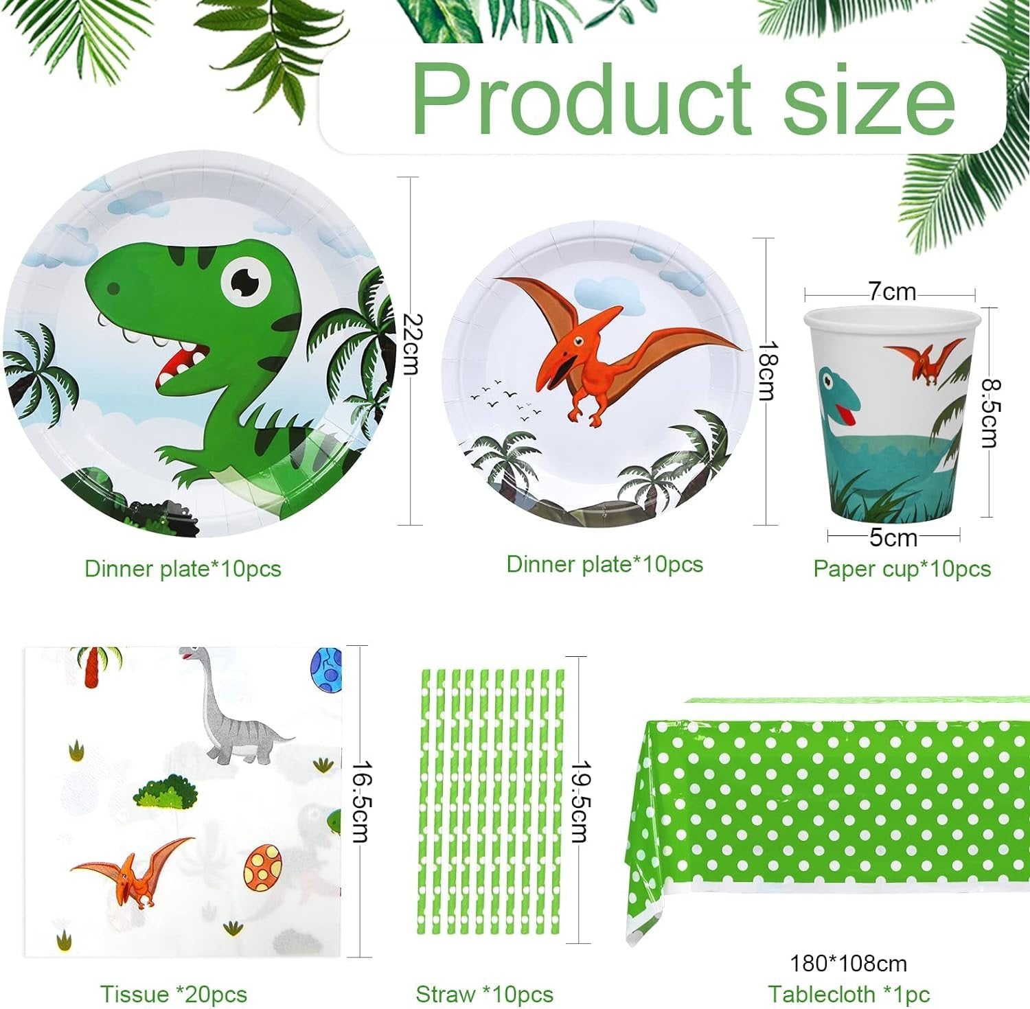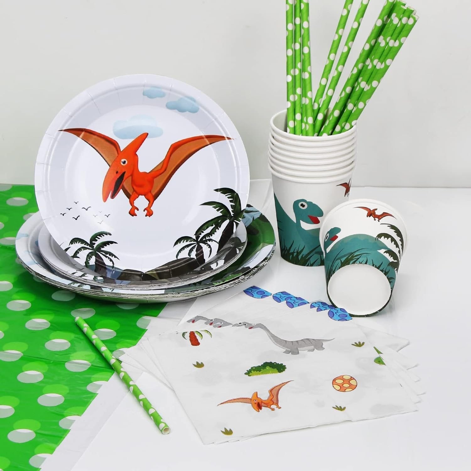 [Infashion]恐竜パーティー用品、恐竜食器セット、プレートカップナプキンストローテーブルクロス、男の子の誕生日の装飾テーマパーティーのための恐竜パーティーアクセサリー
